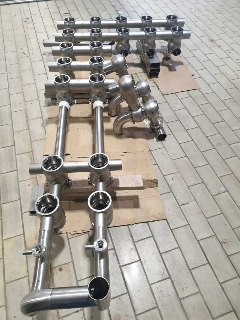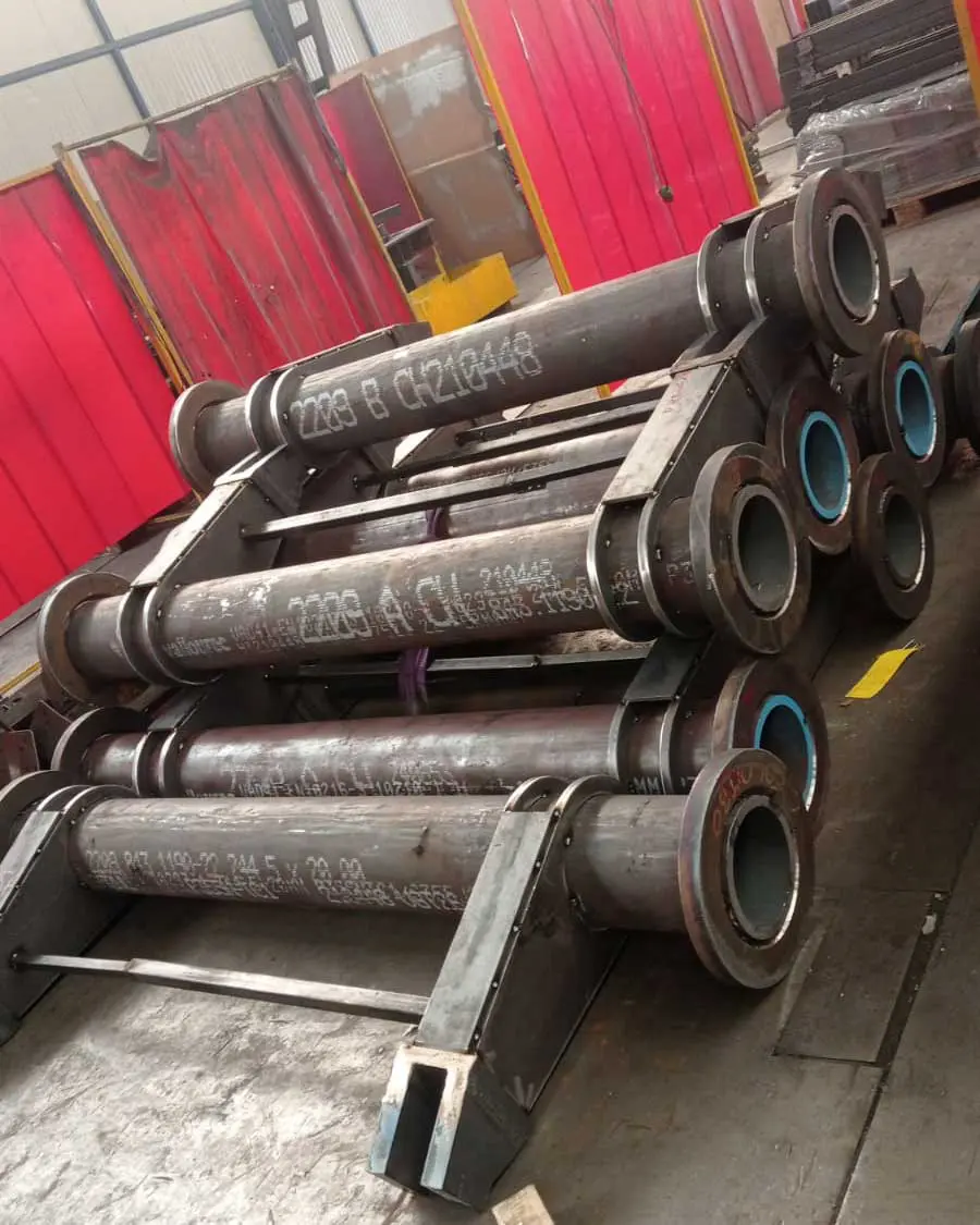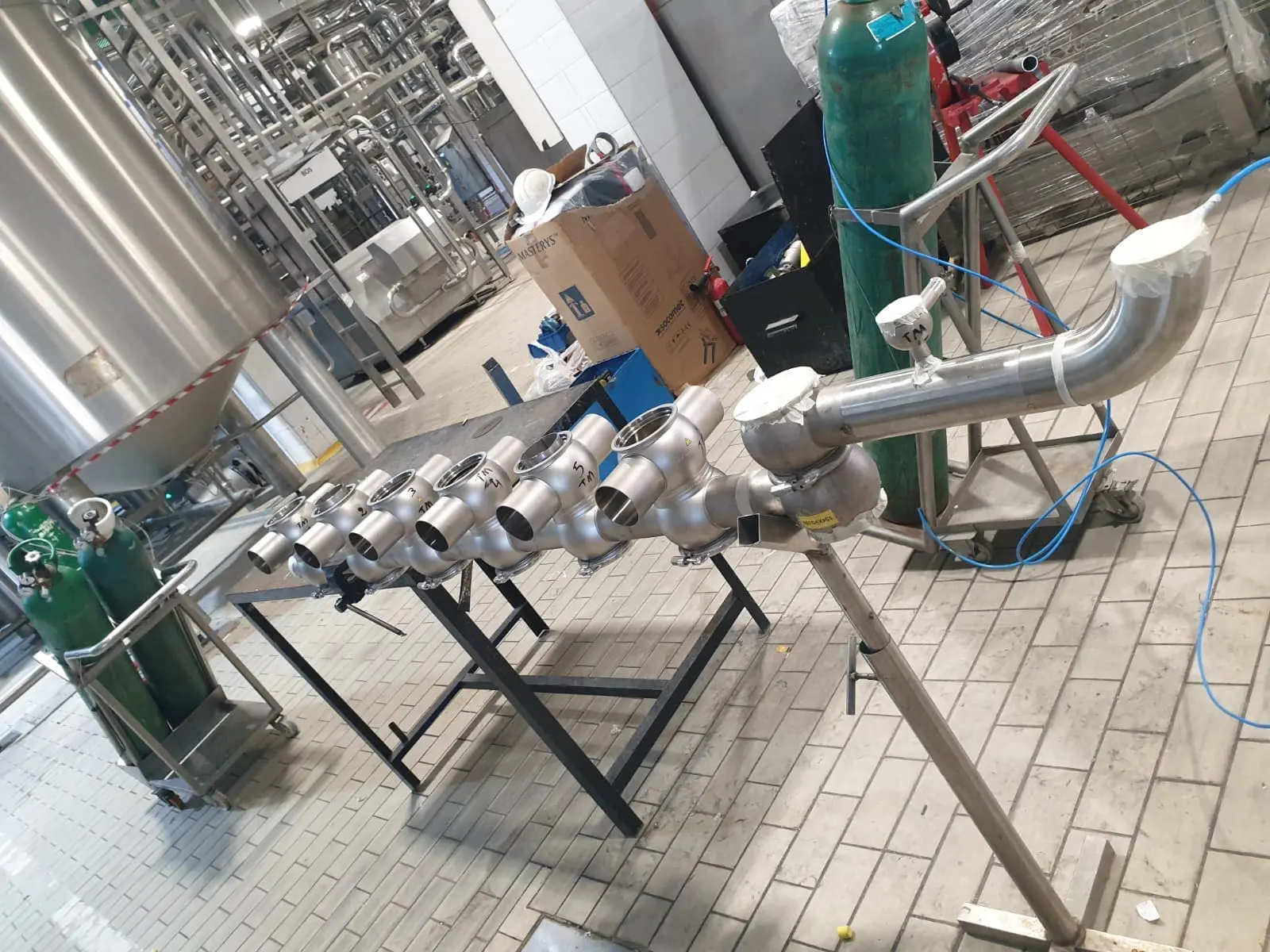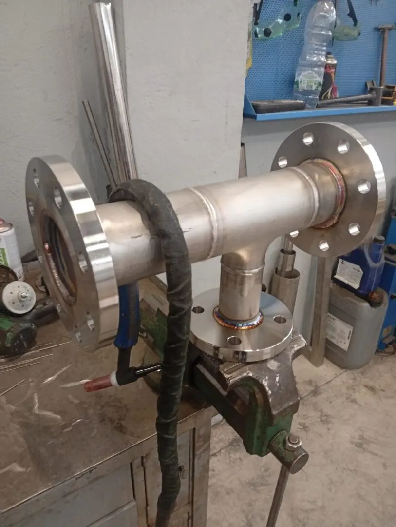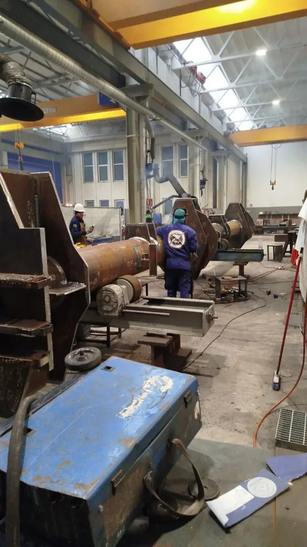 Durante le lavorazioni vengono inoltre utilizzati sistemi di supporto regolabili che permettono di sostenere tubi, flange e componenti durante le fasi di assemblaggio. Questi supporti facilitano il posizionamento dei materiali e rendono più agevoli le operazioni di saldatura.