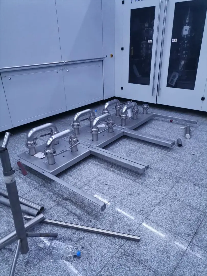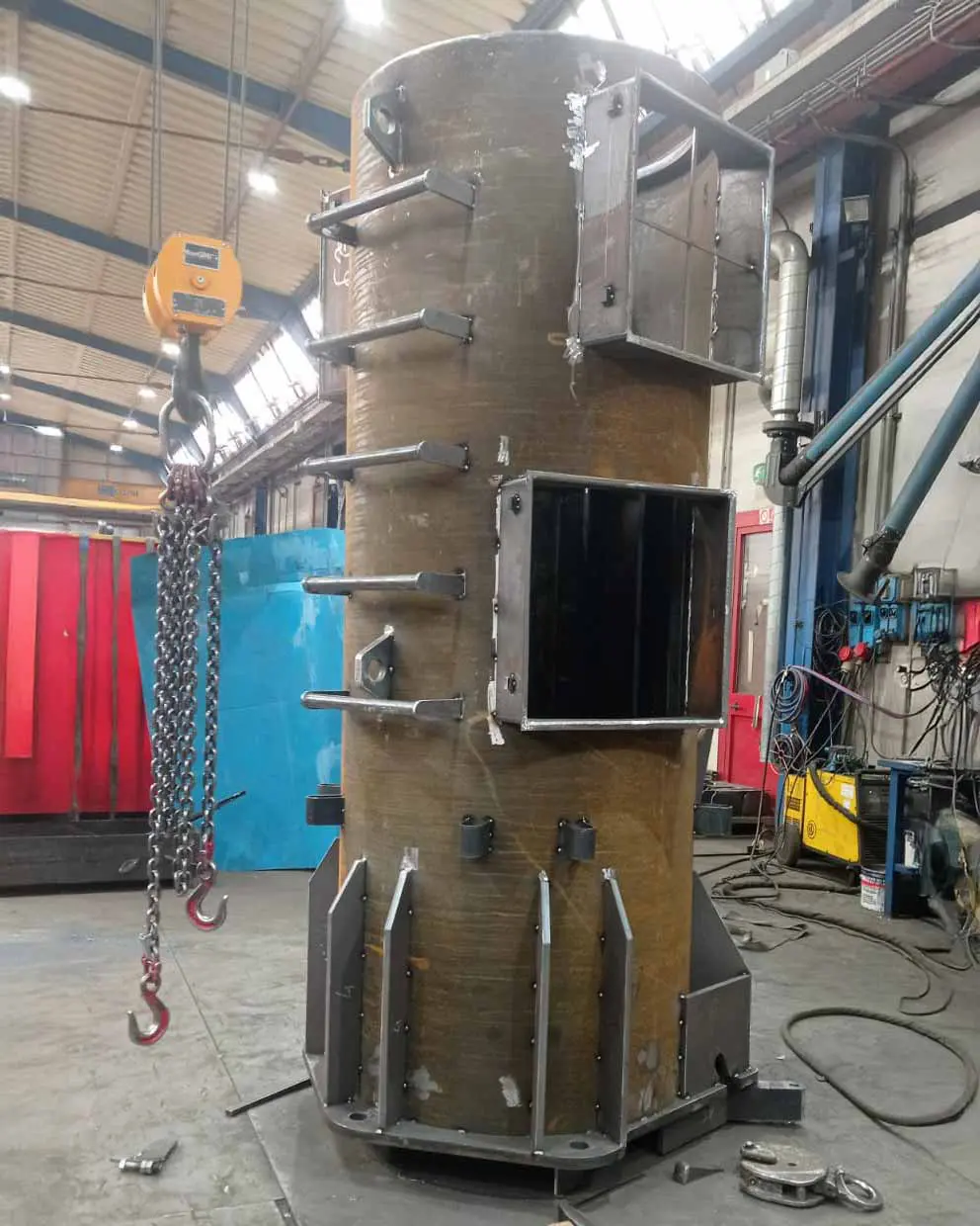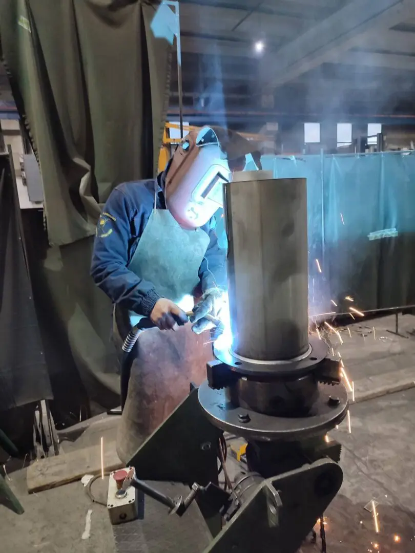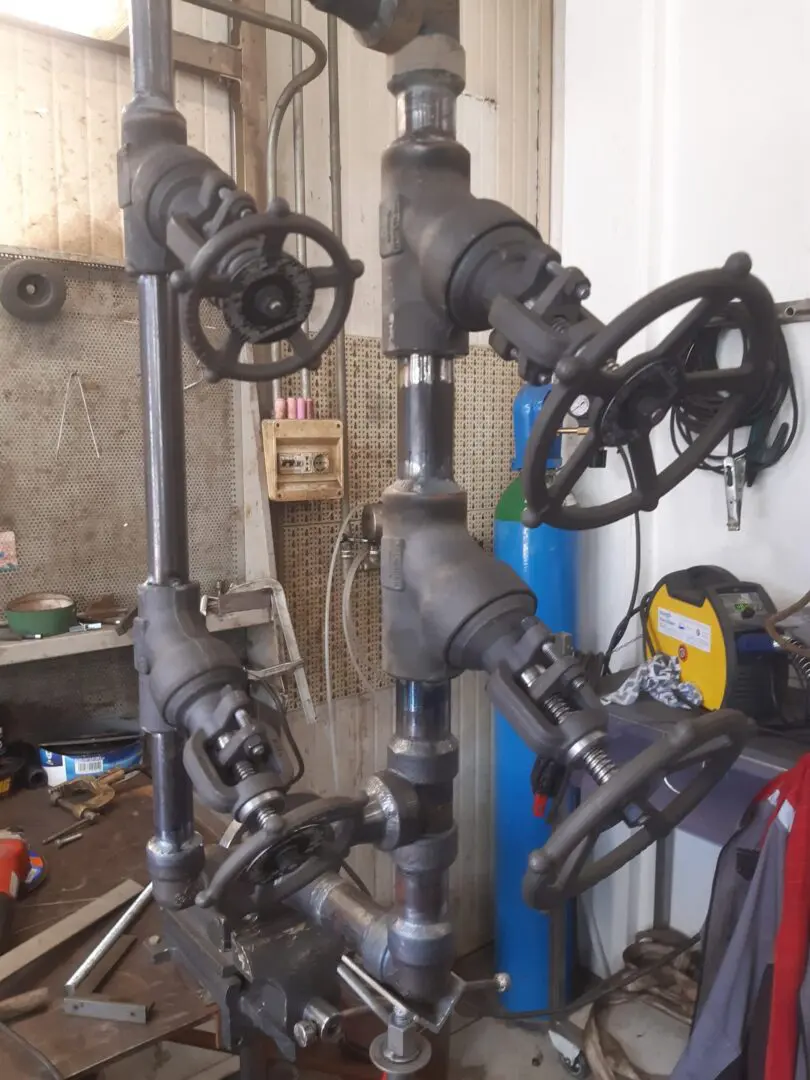 Durante le lavorazioni vengono inoltre utilizzati sistemi di supporto regolabili che permettono di sostenere tubi, flange e componenti durante le fasi di assemblaggio. Questi supporti facilitano il posizionamento dei materiali e rendono più agevoli le operazioni di saldatura.